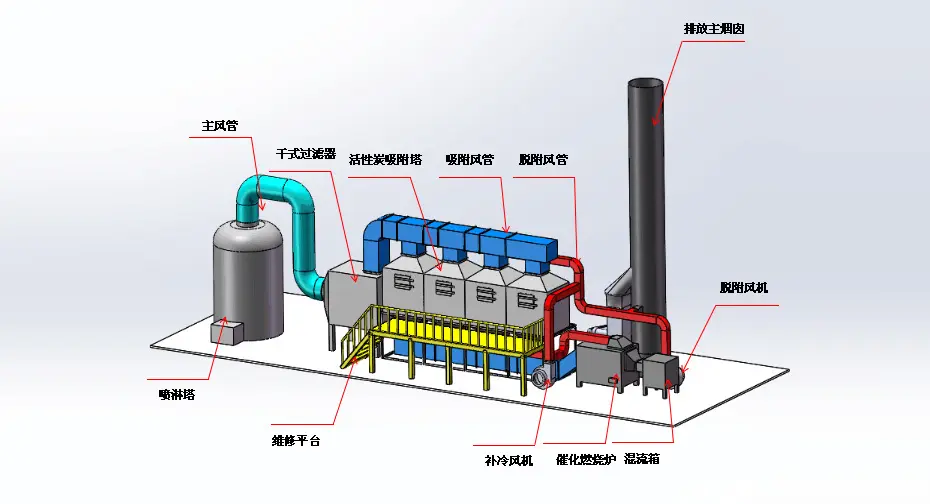 萬川環(huán)保涂裝車間VOCs廢氣治理:全面解決方案與創(chuàng)新技術(shù)行業(yè)廢氣特性分析在工業(yè)涂裝車間,廢氣污染主要來源于噴漆、揮發(fā)和烘干三大工序。根據(jù)具體工況可采用沸石轉(zhuǎn)輪吸附濃縮技術(shù)、蓄熱式熱力燃燒技術(shù)、催化燃燒、活性炭吸附等處理方法